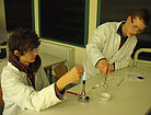 Anschließend wurden wir durch die sogenannte Chemie I geführt, ein mehrstöckiges Gebäude, in dem in mehreren Schritten chemische Produkte, wie z.B. Arzneistoffe hergestellt werden. Dann erhielten wir einen Einblick in das Labor, in dem zuerst die Herstellung der Arzneistoffe in kleinen Mengen getestet wird, bevor diese im großen Umfang produziert werden. Hier konnten wir die einzelnen Schritte der Herstellung sehen, außerdem wurden uns weitere analytische Untersuchungsmethoden gezeigt.