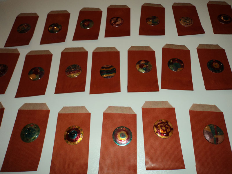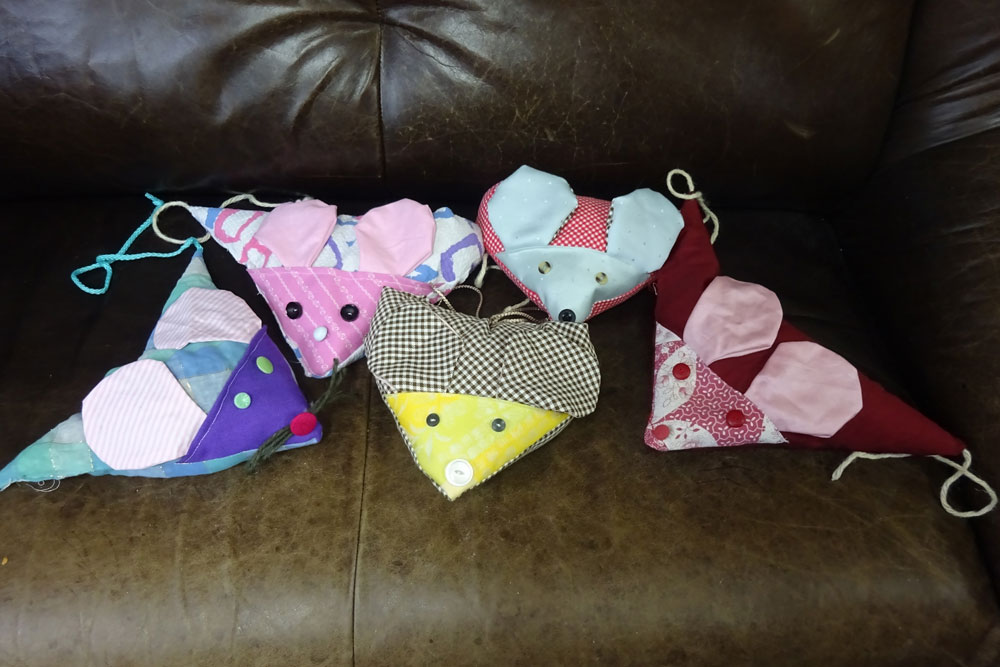 Die Köpfe wurden aus Ton geformt, bemalt und ausgestaltet. Das dazugehörige Kleid wurde mit der Nähmaschine und die Hände mit der Hand genäht.
