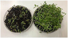 Nach einer Woche nahm jeder seine Petrischale wieder mit in die Schule und die Ergebnisse wurden ausgewertet: Die Kressesamen keimten auch ohne Licht und Erde – allerdings nicht ohne Sauerstoff, Wasser und Wärme.